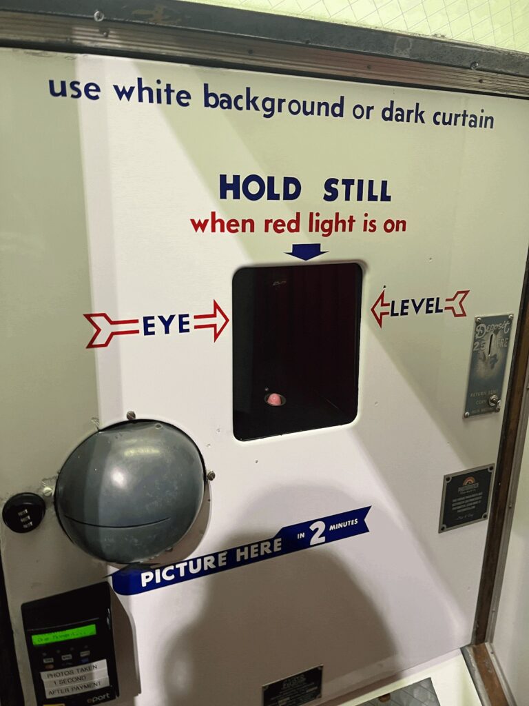My favorite was the oldest photobooth; it is referred to as “Lady” and was built in 1946. The photobooth produces a single strip that comes out of a spherical orb.